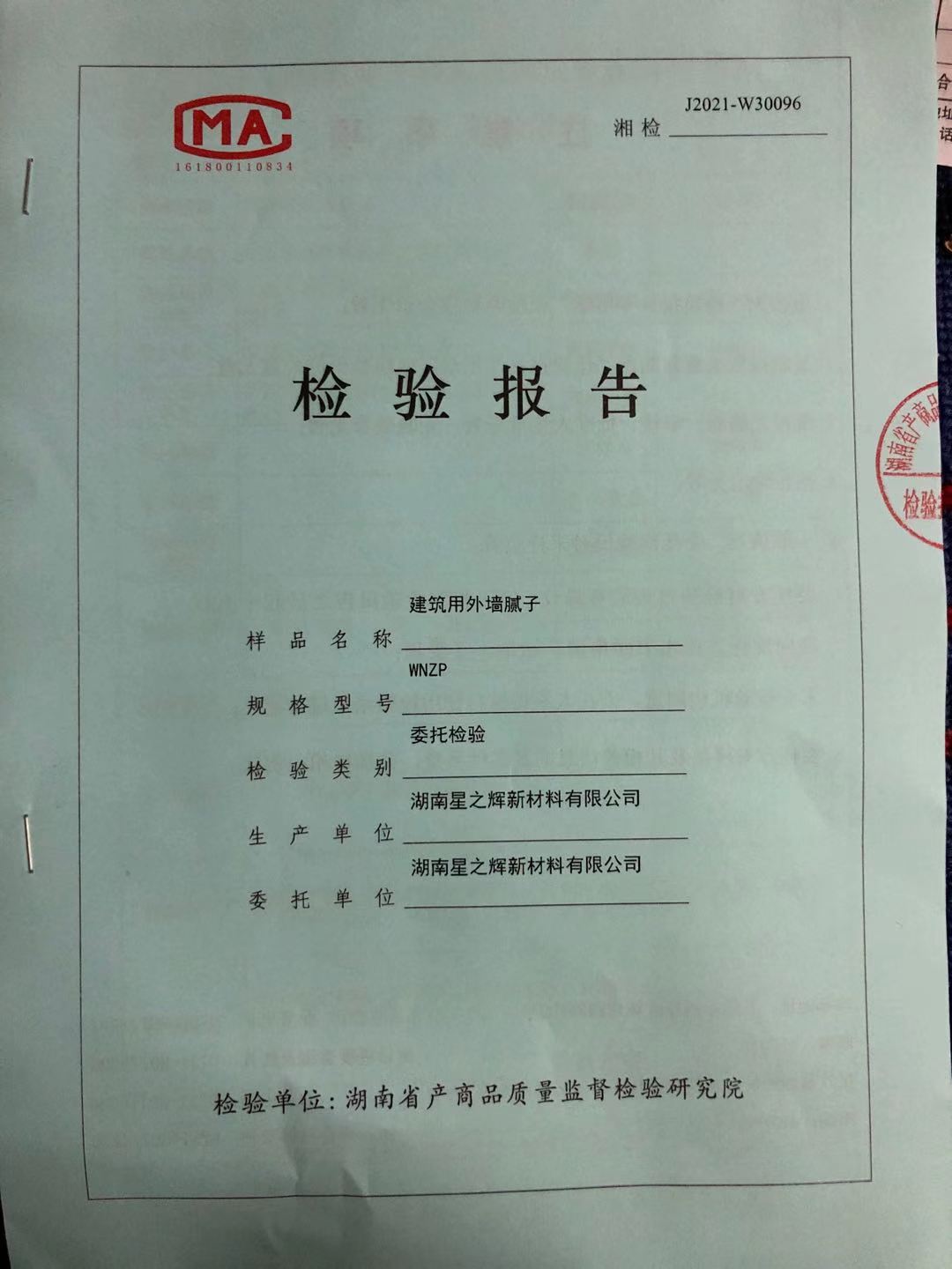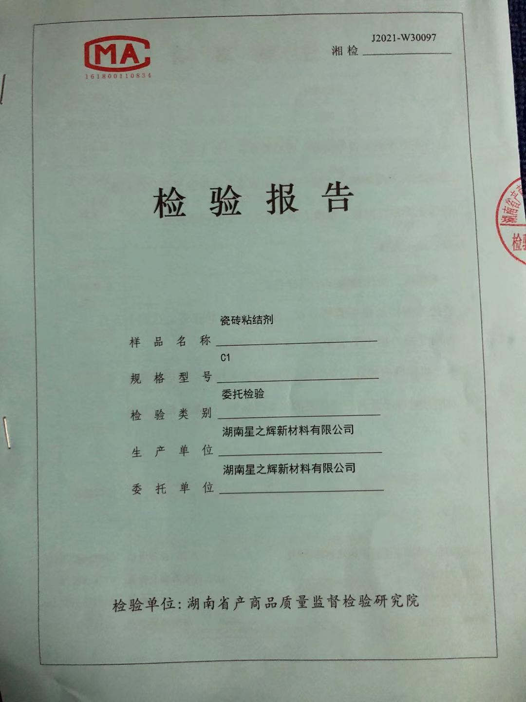瓷磚粘貼劑檢驗報告